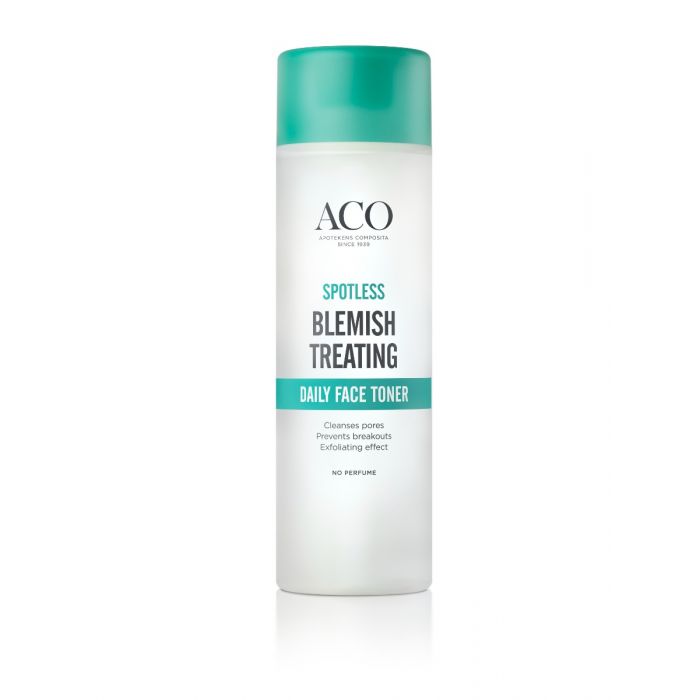 ACO Spotless Daily Face Toner er et ansiktsvann for fet og uren hud. Ansiktsvannet rengjør porene i dybden og forebygger utvikling av kviser og hudormer. Inneholder salisylsyre som virker eksfolierende og åpner tette porer. Ansiktsvannet fjerner overflødig fett og gir en ren og frisk hud. Uten parfyme.