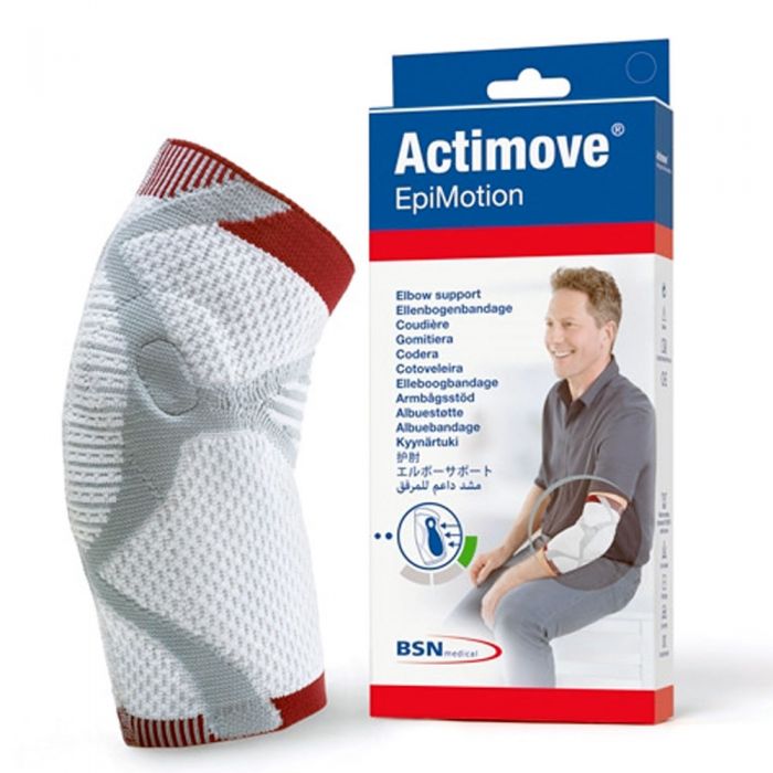 Actimove® EpiMotion kombinerer utmerket passform med målrettet kompresjon og stabilitet for det utsatte området. Ortosen fremmer blodsirkulasjonen og reduserer ødemer/hevelser for en mer effektiv smertelindring. Det er enkelt å ta Actimove® EpiMotion korrekt på takket være en tydelig markering for plassering av albuen.