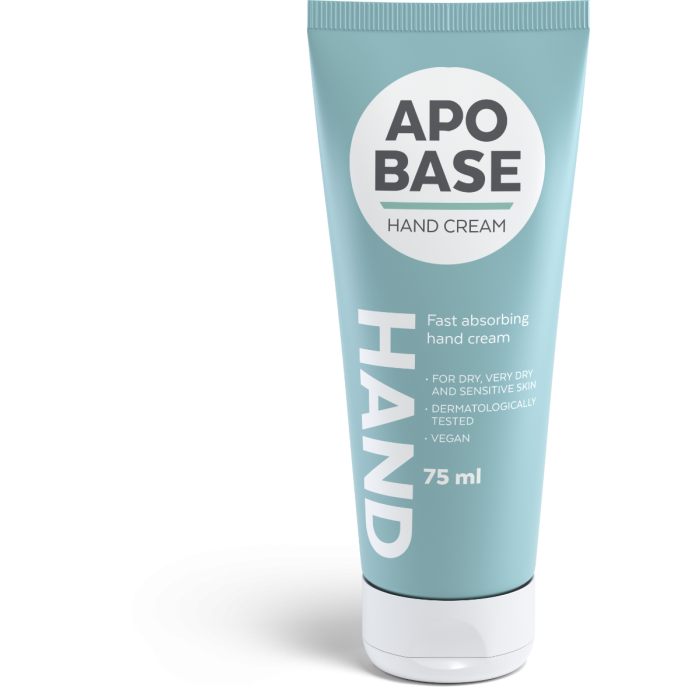 Apobase Hand Cream er en fuktighetsgivende håndkrem til tørr, svært tørr og sensitiv hud. Kremen er absorberer raskt, noe som gjør den enkel å bruke ofte og som er viktig da huden på hendene ofte er ekstra utsatt fra yttre påvirkninger. Apobase Hand Cream styrker hudens naturlige barriere. Dermatologisk testet på tørr og sensitiv hud.