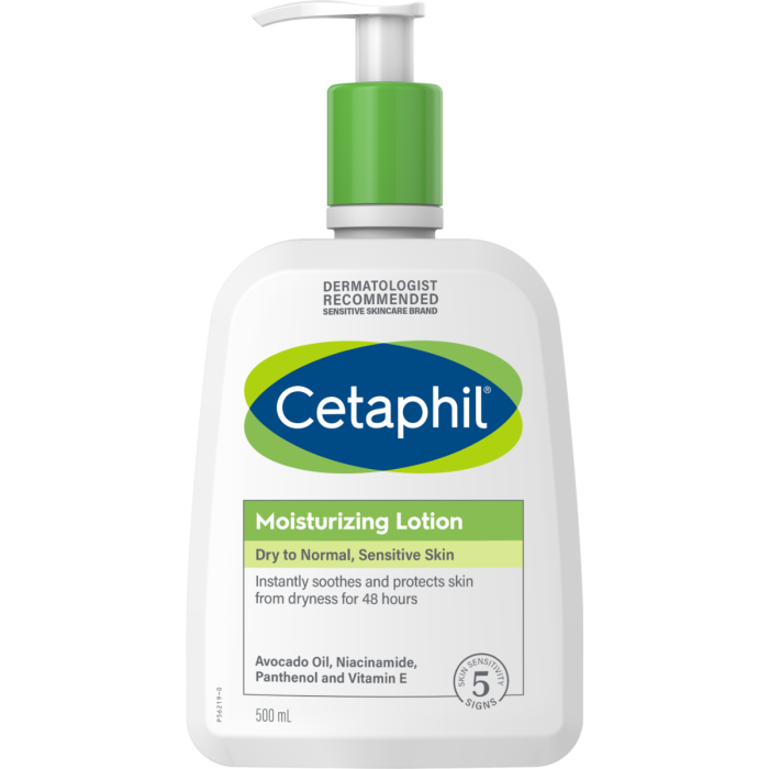 En lett ansikts- og kroppslotion beriket med avokadoolje som ikke føles fet på huden. Klinisk dokumentert å berolige og beskytte huden umiddelbart fra tørrhet i 48 tim,er og gjenopprette hudens naturlige fuktighetsbarriere på bare 1 uke. Med niacinamid, pantenol og vitamin E. Cetaphil beskytter mot 5 tegn på sensitiv hud: tørrhet, irritasjon, ruhet, stramhet og svekket hudbarriere.