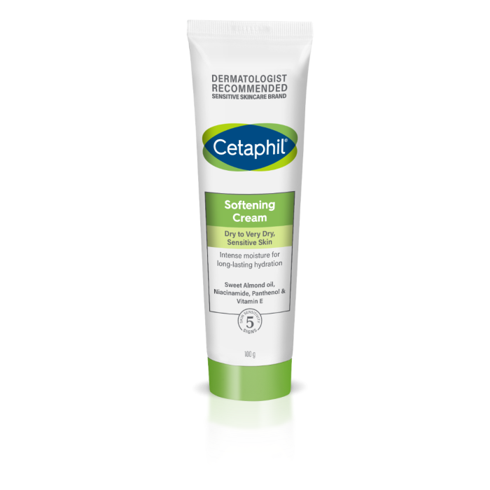 Cetaphil Softening Cream er en fyldig ansikts- og kroppskrem som inneholder søtmandelolje, niacinamid, pantenol og vitamin E. Klinisk dokumentert å gi huden fuktighet på bare 1 dag. Den er med på å reparere hudens naturlige fuktighetsbarriere på bare 1 uke, for umiddelbar og langvarig effekt. Cetaphil beskytter mot 5 tegn på sensitiv hud: tørrhet, irritasjon, ruhet, stramhet og svekket hudbarriere.