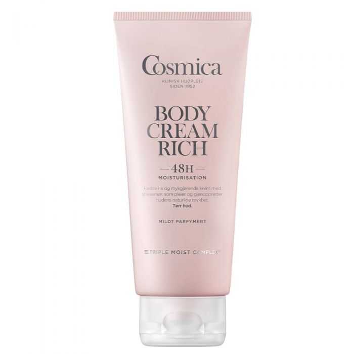 Cosmica Body Lotion Rich & Soft er en ekstra rik kroppskrem for tørr hud. 48 timers fuktighetsgivende effekt. Parfymert.