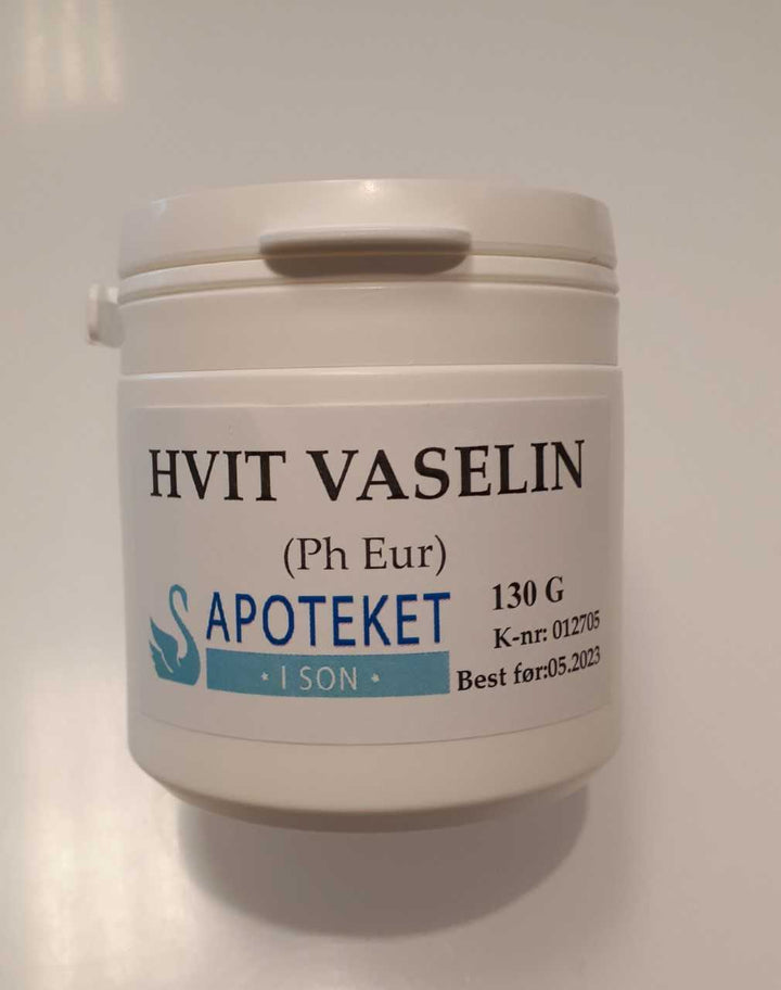 Hvit vaselin er en dekkende salve med vannavstøtende egenskaper som beskytter huden. Den er mykgjørende og danner et beskyttende lag på huden, slik at den naturlige fuktigheten bevares. Egnet som daglig pleie av tørr hud, og kan anvendes for å holde sår og mindre skader i huden fuktig. Tilpasset sensitiv hud. Kan brukes av både voksne og barn. Inneholder ikke alkohol, konserveringsmidler eller vann. Uten parfyme.