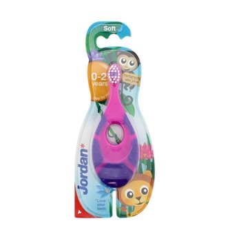 Jordan Step 1 tannbørste er tilpasset de aller minste barna i alderen null til to år og deres behov. Den har et lite hode med supermyk bust. Det fargede området på busten indikerer Statens Helsetilsyns anbefalte mengde fluortannkrem. Små barn klør ofte i gommene når tennene kommer, og denne barnetannbørsten har derfor et ”knudrete” felt på skaftet som trygt kan tygges på. Den korte halsen forhindrer at børsten føres for langt inn i munnen. Skaftet er ergonomisk utformet og tilpasset grepet til både voksne og barn. Leveres i assorterte farger.