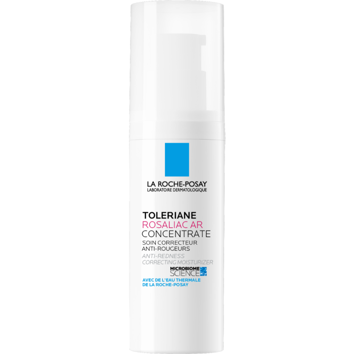 TOLERIANE ROSALIAC AR CONCENTRATE er et konsentrat som hemmer rødhet, beregnet for tørr hud med tendens til rosacea eller rødhet. Denne unike formuleringen med sphingobioma og fargekorrigerende pigmenter bidrar til å redusere og nøytralisere rødhet, og gir en jevnere hudtone. Konsentratet har en umiddelbar beroligende effekt, reduserer blussende følelse av varme og ubehag og bidrar til å forebygge tilbakevendende tørr hud. Uten parfyme.