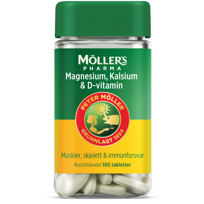 Magnesium, kalsium og vitamin D bidrar til vedlikehold av normal muskelfunksjon og normalt skjelett.Vitamin D bidrar til immunforsvarets normale funksjon.Tablettene er mandelformede og lette å svelge. Inneholder ikke gluten, laktose, sitrus eller gelatin.Boksen er laget av 98% resirkulert plast, og er resirkulerbar.