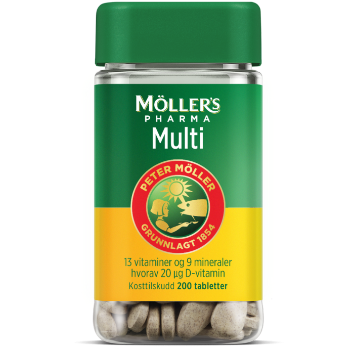 Inneholder 13 vitaminer og 9 mineraler hvorav 20 µg D-vitamin.Tablettene er mandelformede og lette å svelge. Inneholder ikke gluten, laktose eller gelatin. Boksen er laget av 98% resirkulert plast, og er resirkulerbar.