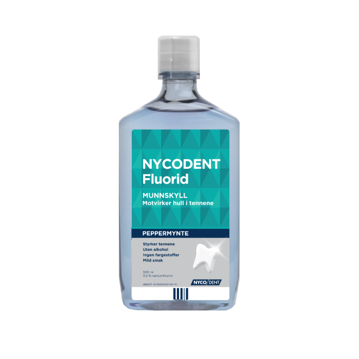 NYCODENT Fluorid munnskyll motvirker hull i tennene, styrker tannemaljen og hemmer syreangrep. Bruker du NYCODENT Fluorid regelmessig økes remineraliseringen av tennene. Er mild i smak og inneholder ikke fargestoffer eller alkohol.