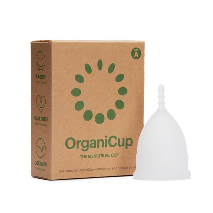 OrganiCup er en menskopp som erstatter bind og tamponger. Kjemikaliefri og varer i årevis. Str. A: Til kvinner som ikke har født vaginalt