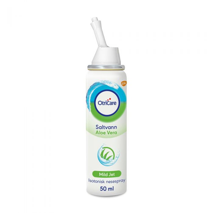 OtriCare saltvann med aloe vera er en naturlig nesespray som renser, skyller og fukter nesen hos voksne og barn. Aloe vera bidrar med å fukte nesen. OtriCare saltvann med aloe vera kan brukes daglig til å skylle nesen, og dermed også lindre tørr og irritert neseslimhinne. Nesesprayen er et naturlig alternativ uten konserveringsmidler som både kan brukes alene eller i kombinasjon med legemidler ved for eksempel allergi og forkjølelse. Egner seg for daglig bruk. Kan brukes av alle over to år, samt gravide og ammende.