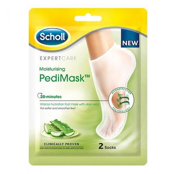 Scholl fuktighetsgivende fotmaske med aloe vera gir intens næring og pleie til huden på føttene. Klinisk dokumentert å gi 24 timers fuktighet på kun 20 minutter. Kan brukes av diabetikere.