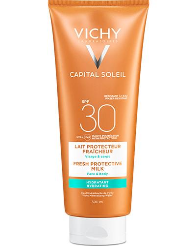 Vichy Capital Soleil sollotion SPF30 er tilpasset hele familien, både voksne og barn. En sollotion med lett konsistens som trekker raskt inn i huden. Passer til de som ønsker en solkrem som er svette- og vannresistent. Den gir en optimal solbeskyttelse og forebygger solskader forårsaket av solens UVA- og UVB-stråler. Solkrem bør påsmøres i rikelige mengder 30 minutter før man går ut i solen, slik at kremen får tid til å trekke inn. Påføres regelmessig, særlig etter at man har badet eller tørket seg med et håndkle. Med Vichy kildevann som virker styrkende og beroligende på huden. Med parfyme.